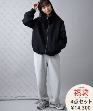 2025年向けではスタンドネック系のライトアウター、柔らかいニット、ワイドめのスウェットパンツという組み合わせが確認でき、価格は税込14,300円の例がありました。