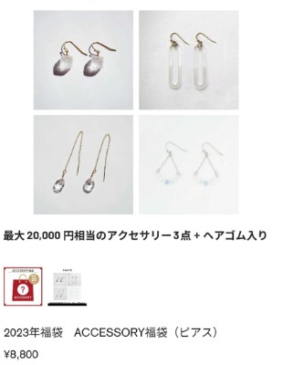 中身については、直営店の「ピアス2点+ネックレス1点(計3点)」のような“セット内でカテゴリが明示される”仕様が見られ、オンラインも同系統の組み合わせになる可能性が高いと考えます。