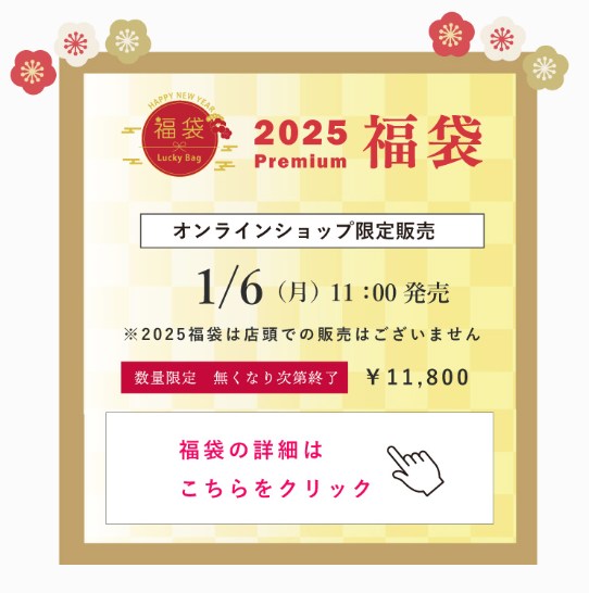 - 2025年:1/6(月)11:00 オンラインショップ限定販売(店頭販売なし)/価格¥11,800。同日「電話注文」案内もあり。