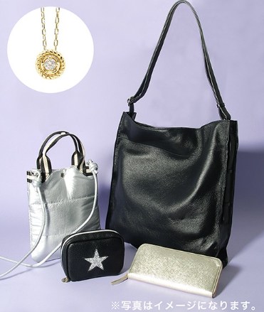• 33,000円(税込):計6点(例:レザーバッグ/ウォレット/ジュエリーボックス/ルームソックス/エコショルダーバッグ/K10ダイヤ付きネックレス