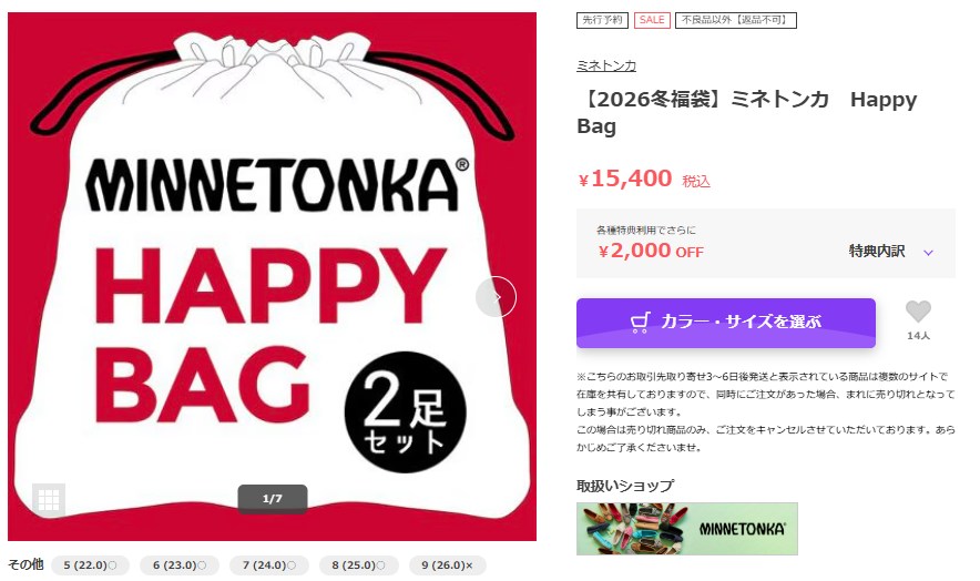 ・ミネトンカ福袋2026の中身をデータから推測します